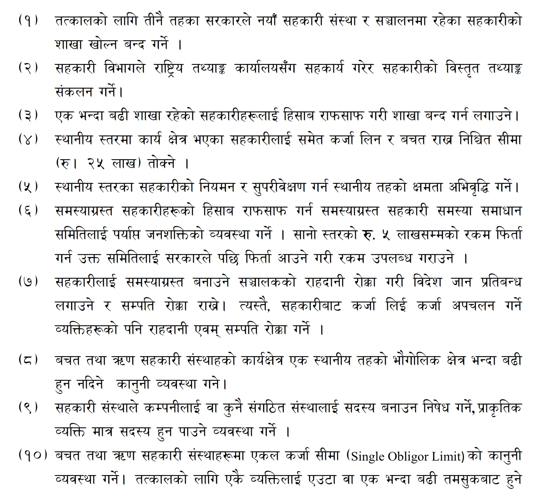 आयाेगले सहकारी सुधारका लागि दिएकाे सुझाव: